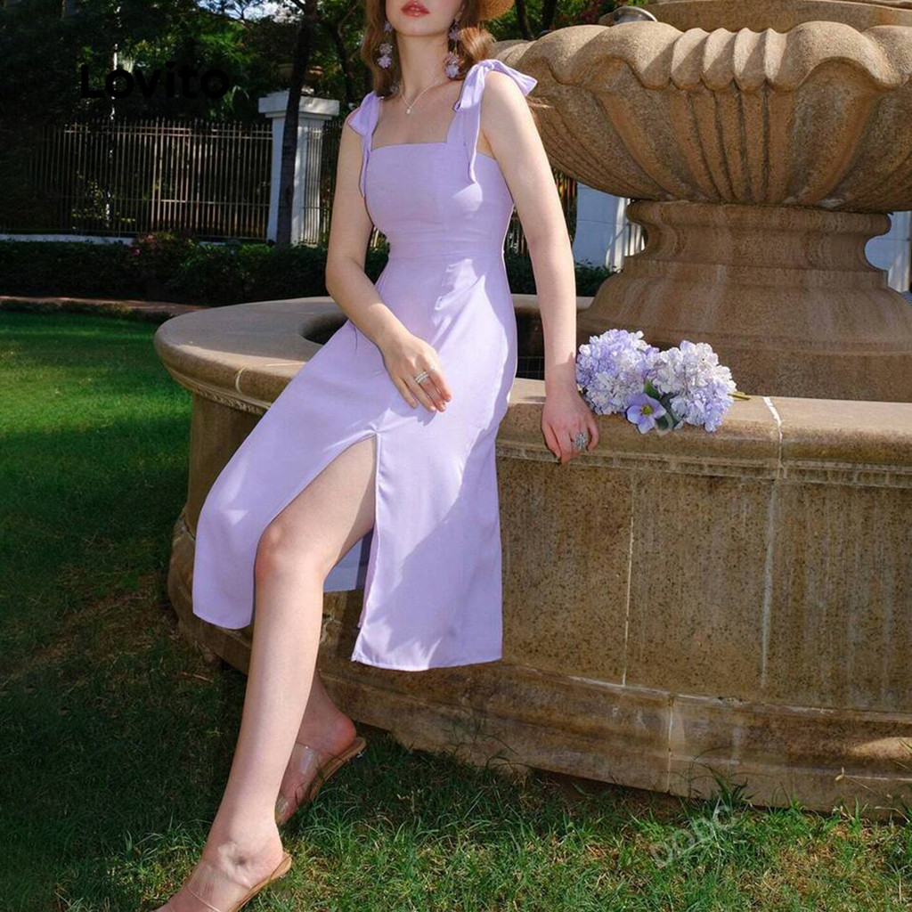 Lovito Vestido Casual liso com gravata frontal para mulheres L129ED331