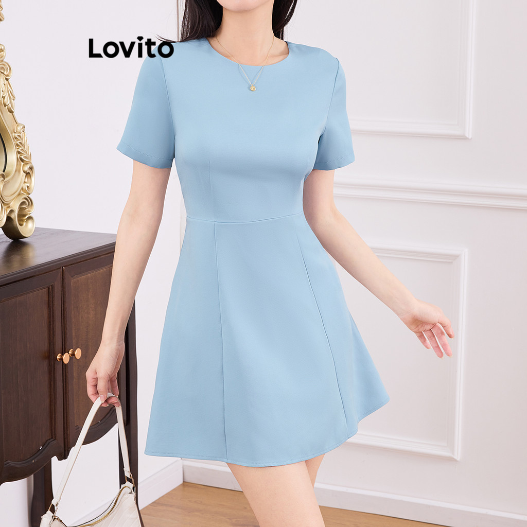 Lovito Vestido casual liso com zíper drapeado para mulheres L121AD1089