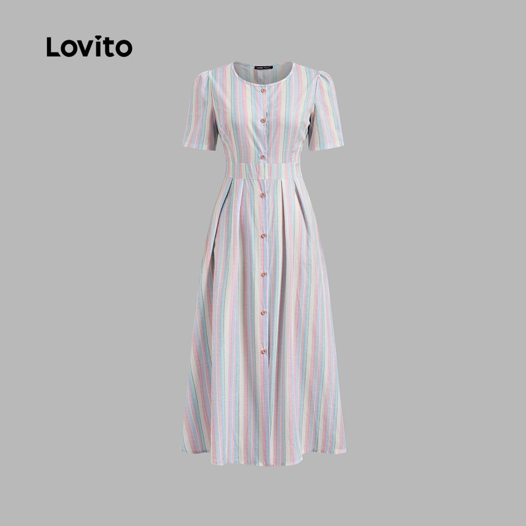 Lovito Vestido Casual Listrado Geométrico Vestido De Verão/primavera Para Mulheres L133ED583