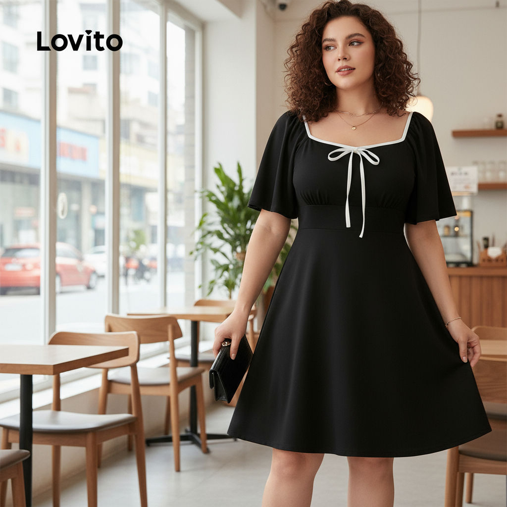 ✅Destaques -❤️Fixação Em Contraste -❤️Laço -❤️Macio E Confortável -❤️Verão/Primavera ✅Descrições Estampa: Lisa Estilo: Casual Tipo De Vestido: Evasê Tamanho Plus: Sim Material: Poliéster Composição: 95% Poliéster + 5% Elastano Tipo De Caimento: Regular Transparência: Não Elasticidade: Leve Região De Origem: China Continental ✅O Pacote Inclui 1Xvestido ✅Introdução À Lovito A Lovito É Uma Marca Emergente Que Acredita No Poder Feminino, Comprometida Em Oferecer Opções De Roupas Elegantes E Acessíveis Para Diferentes Estilos, Necessidades E Identidades. Acreditamos Que A Moda Deve Ser Divertida, Libertadora E Fazer Você Se Sentir Bem. Afinal, O Melhor Acessório Para Qualquer Look É A Autoconfiança. ✅Notas De Compra Consulte Sua Altura E A Tabela De Tamanhos Antes De Comprar. Há Uma Diferença De 2 A 3% Devido À Medição Manual. Todas As Fotos Dos Produtos Nesta Loja São 100% Reais. Devido À Diferença De Luz E Tela, É Normal Haver Uma Sutil Diferença De Cor E Erros Reais. Siga Nossa Loja E Descubra Novos Itens E As Melhores Ofertas Para Você! Se Tiver Alguma Dúvida, Entre Em Contato Conosco Pelo Chat E Responderemos O Mais Breve Possível.