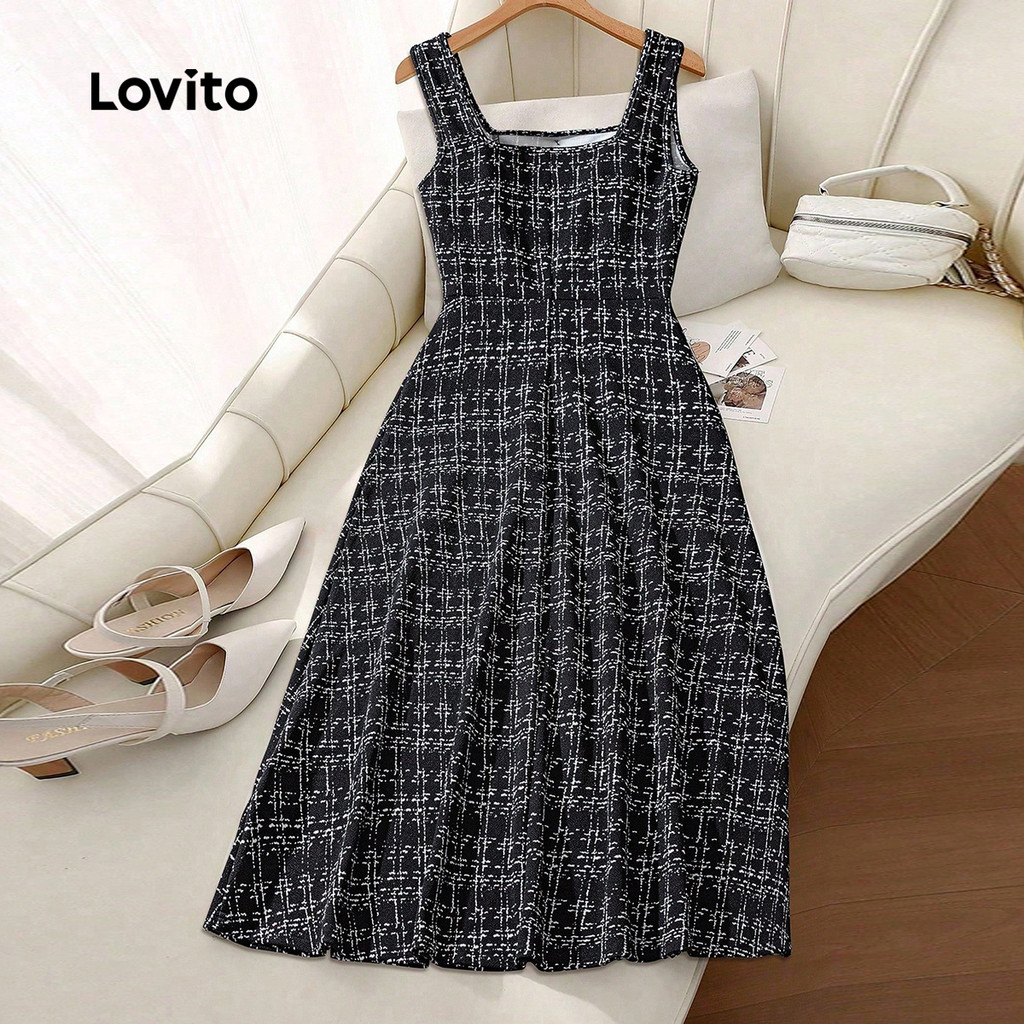 Lovito Vestido Casual Primavera/verão Vestido Preto para Mulheres LK2AD1095