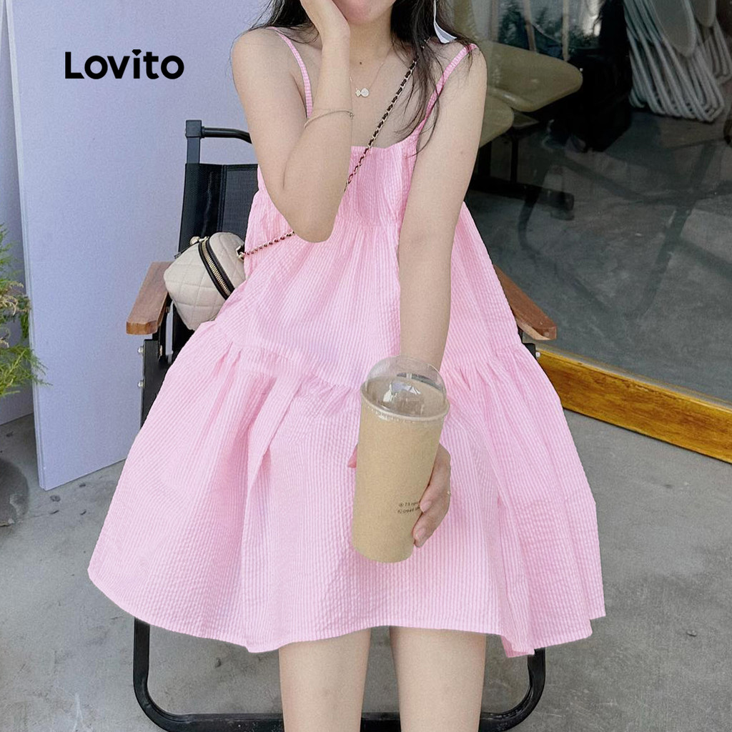 Lovito Vestido Casual Rosa Clássico Versátil Dia Primavera/verão Usar No Trabalho Para Mulheres L151AD048