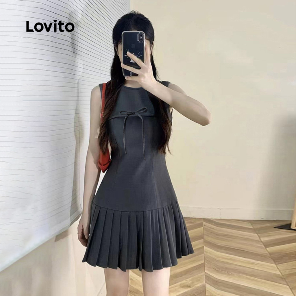 Lovito Vestido Casual Vestido Liso Com Laço Para Mulheres LNA71500