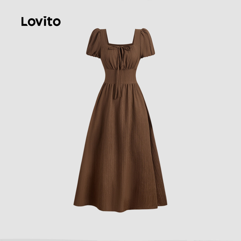 Lovito Vestido com Zíper Casual para Primavera/Verão Marrom Feminino L154LD221