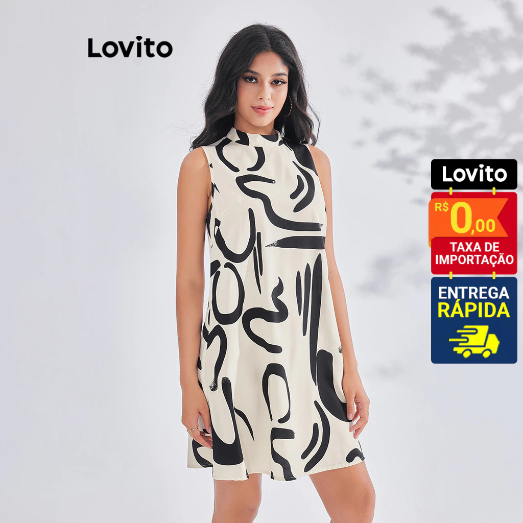 Lovito Vestido Curto Gola Alta Estampa Geometrico Feminino LBE03013