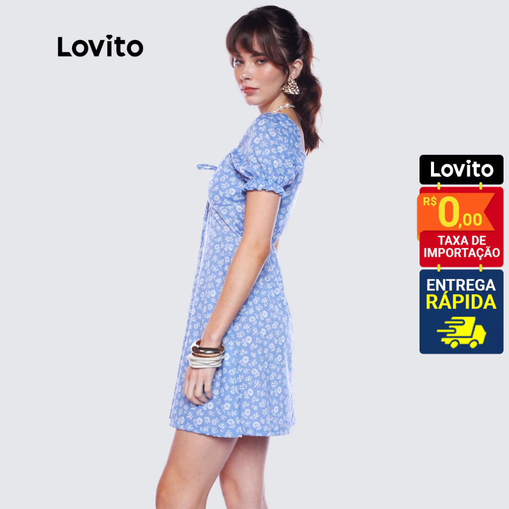 Lovito Vestido Curto Manga Curta Moda Casual Floral Para Mulheres LB1142BRL1172
