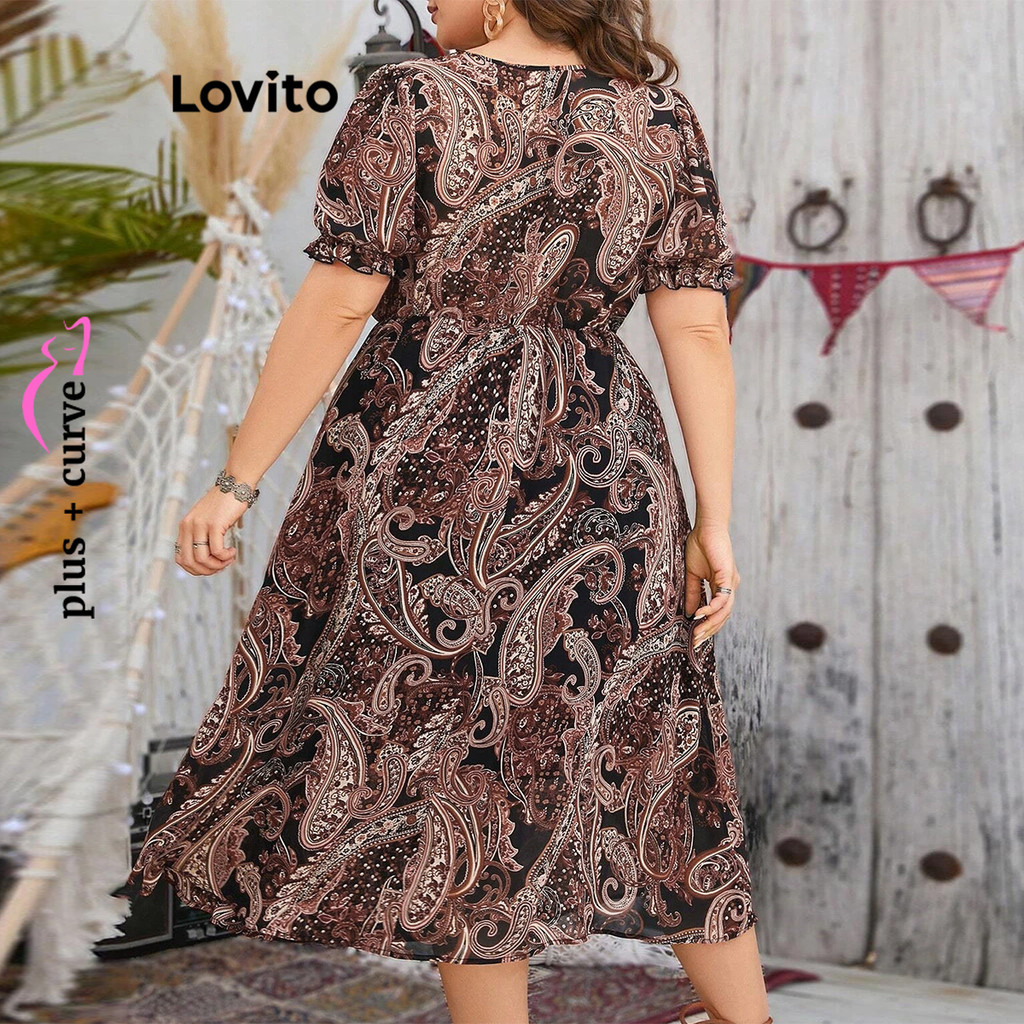 Lovito Vestido Curva Plus Size Casual Com Estampa Tribal Vestido Feminino LBL18321