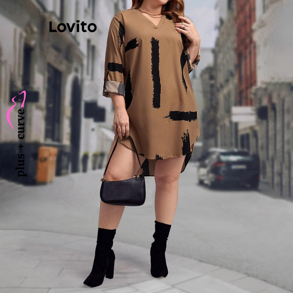 Lovito Vestido Curva Plus Size Casual Vestido Colorblock Geométrico Para Mulheres LBL13296