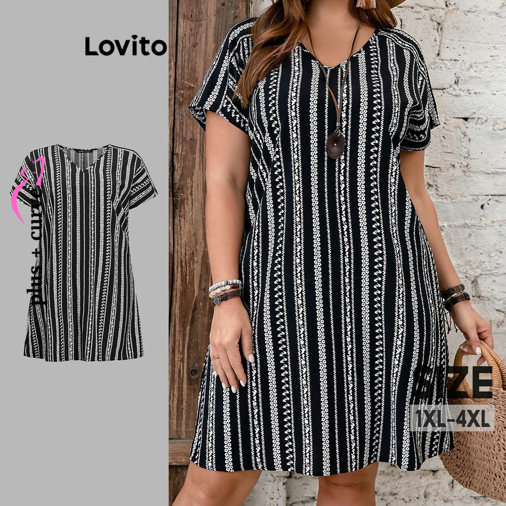 Lovito Vestido Curvo Plus Size Boho Tribal Print Vestido Plissado Para Mulheres LBL18338