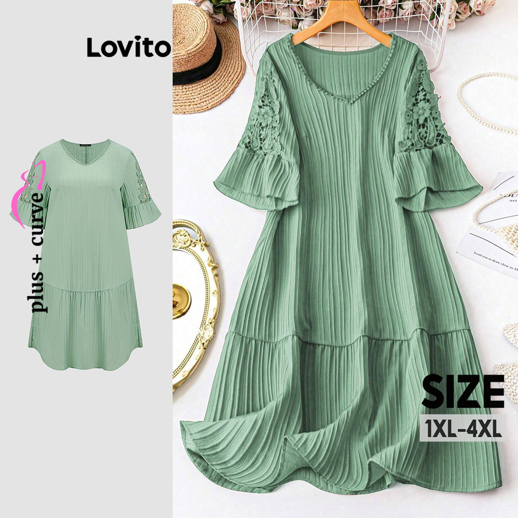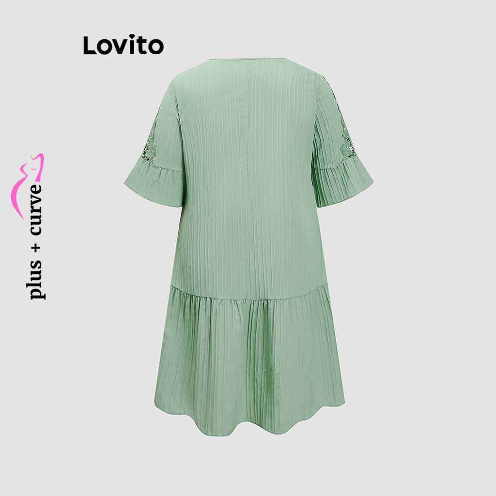 Lovito Vestido Curvo Plus Size Casual Vestido De Renda Lisa Para Mulheres LBL18876