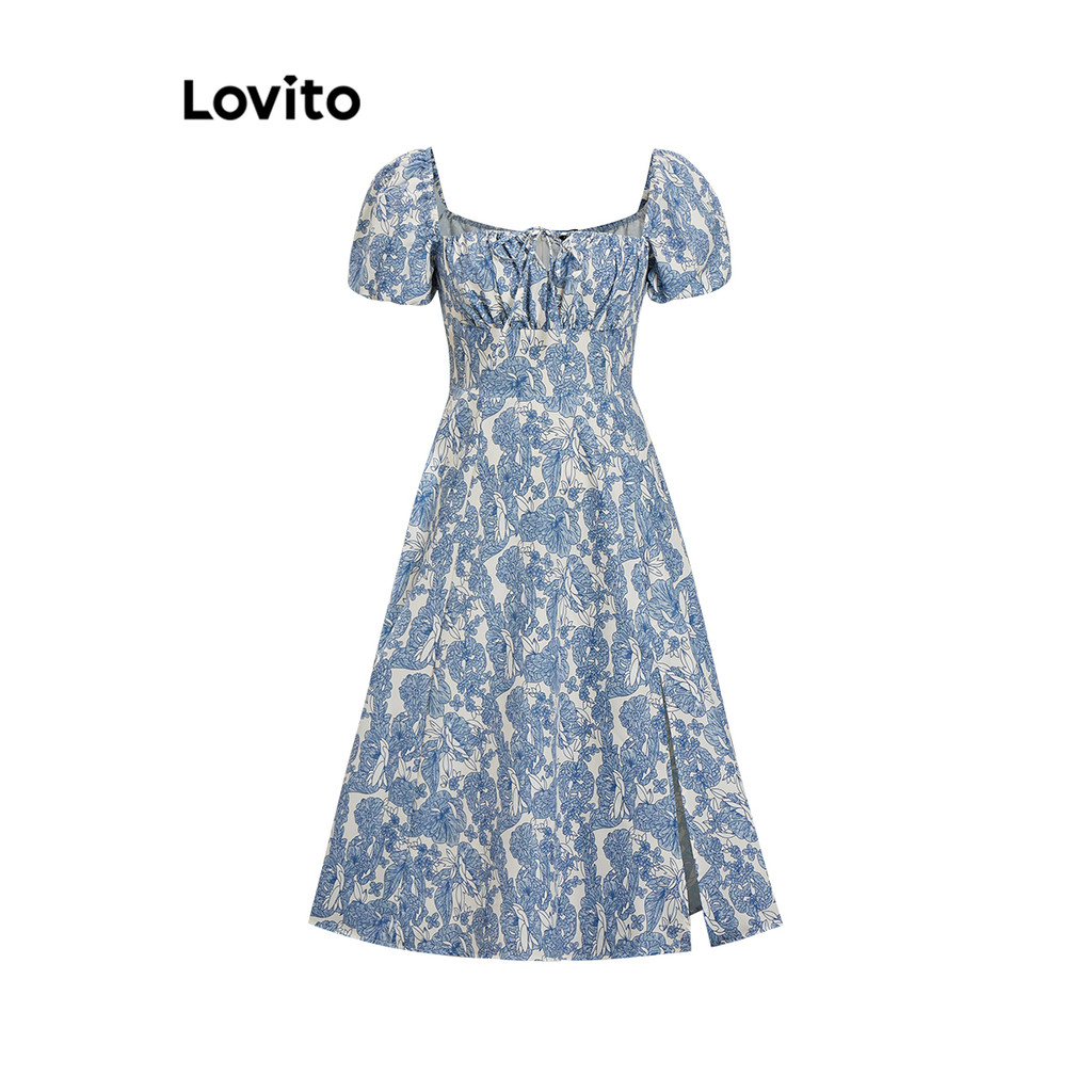 Lovito Vestido De Festa Ditsy Floral Plissado Com Renda Manga Bufante Verão/Primavera Para Mulheres L77ED275