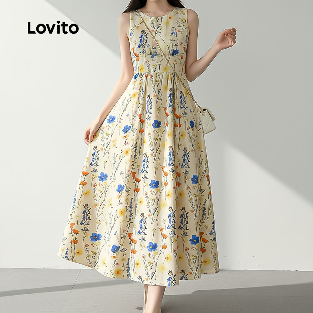 Lovito Vestido de Flores com Bolso e Estrutura Linha Romântico para Mulheres LK4AD022