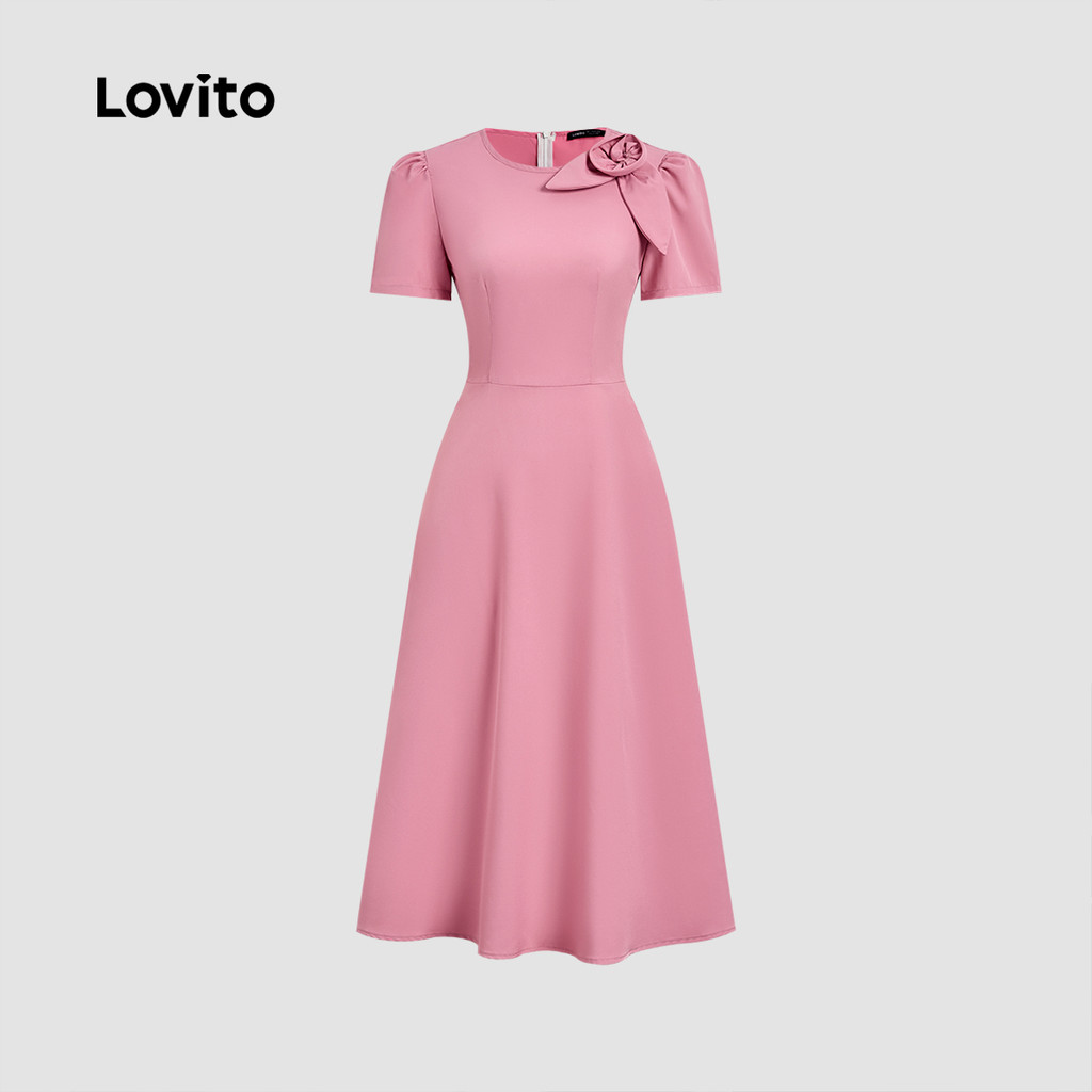Lovito Vestido Elegante 3d Flores Primavera/verão Vestido Rosa para Mulheres. L172ED713