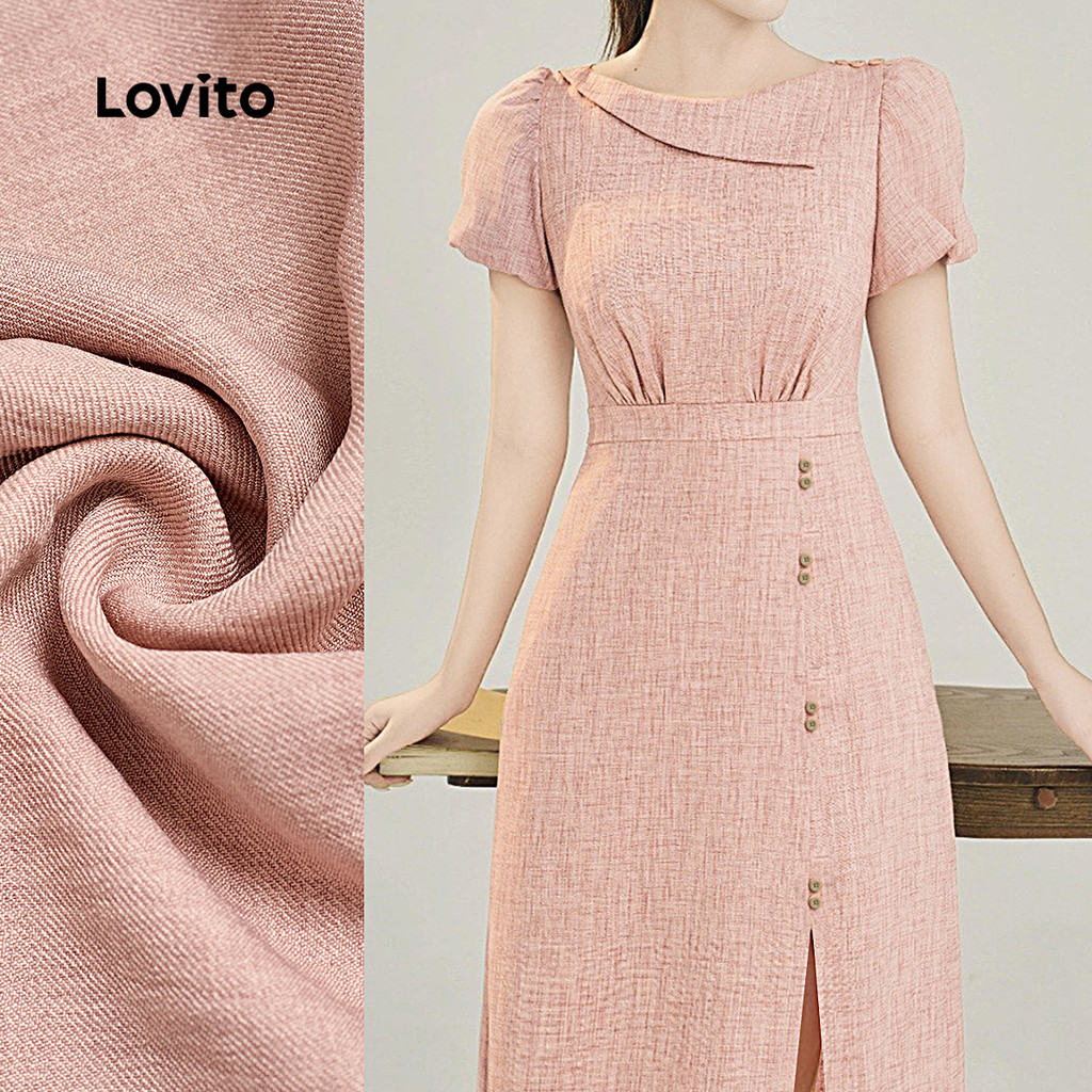 Lovito Vestido Elegante Assimétrico com Botões Primavera/verão Vestido Rosa para Mulheres L142LD565