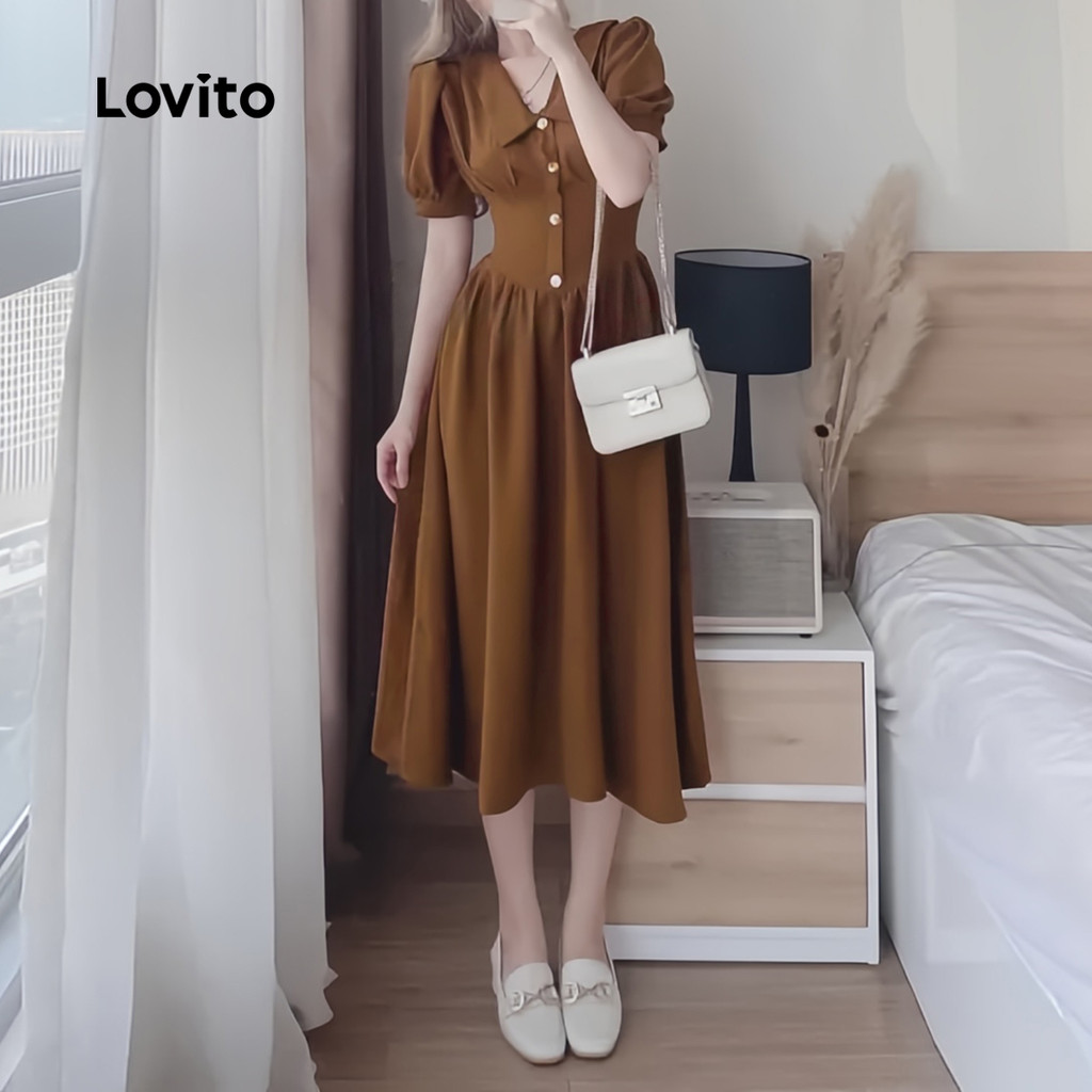 ✅DESTAQUES -❤️BotãoBotão -❤️Sensação de mão suave -❤️Primavera e verão ✅DESCRIÇÕES Estampa / Padrão:Plain Estilo:Elegante. Tipo de vestido:Flared Tamanho Plus:No Material:Poliéster Composição:100%Polyester Tipo de modelagem:Regular Fit Transparência:No Esticar:Non-stretch Feito na China ✅O PACOTE INCLUI 1XVestir ✅INTRODUÇÃO LOVITO A Lovito é uma marca em crescimento que acredita no poder das meninas. Estamos comprometidos em oferecer opções de roupas fashion e acessíveis, para todos os estilos, necessidades e identidades. Acreditamos que a moda deve ser divertida, liberadora e fazer você se sentir incrível. Afinal, o melhor acessório para qualquer look é a autoconfiança! ✅NOTAS DE COMPRA Antes de comprar, dê uma olhadinha na tabela de medidas disponível no site. Lembre-se de que, por serem feitas manualmente, as medidas podem variar de 1 a 2 cm. As cores dos produtos também podem ter pequenas diferenças em relação às fotos, dependendo da iluminação e das configurações do seu dispositivo. Siga nossa loja e conheça novos itens e as melhores ofertas para você!! Se você tiver alguma dúvida, converse conosco e responderemos o mais rápido possível.