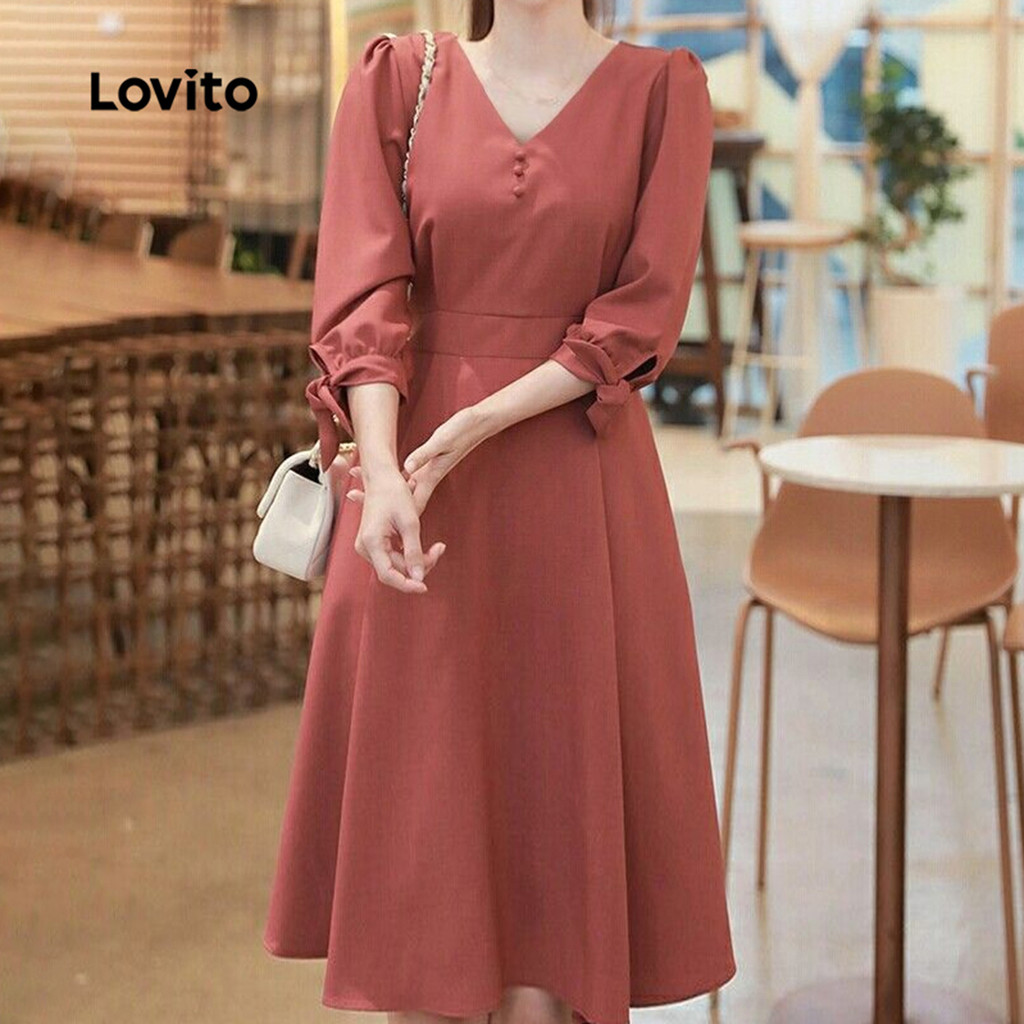 ✅Destaques -❤️Fechamento Com Cadarço -❤️Fechamento Com Botões -❤️Macio E Confortável -❤️Ideal Para Primavera E Verão ✅Descrição Estampa: Lisa Estilo: Elegante Tipo De Vestido: Linha A Tamanhos Plus Size: Não Material: Poliéster Composição: 100% Poliéster Modelagem: Regular Transparência: Não Elasticidade: Sem Elasticidade Origem: China Continental ✅O Pacote Inclui 1 Vestido ✅Apresentação Da Lovito A Lovito É Uma Marca Emergente Que Acredita No Poder Feminino, Comprometida Em Oferecer Opções De Roupas Modernas E Acessíveis Para Diferentes Estilos, Necessidades E Identidades. Acreditamos Que A Moda Deve Ser Divertida, Libertadora E Fazer Você Se Sentir Bem. Afinal, O Melhor Acessório Para Qualquer Look É A Autoconfiança. ✅Notas De Compra Por Favor, Consulte A Tabela De Tamanhos Antes De Comprar. Pode Haver Uma Pequena Diferença Devido À Medição Manual. Todas As Fotos Dos Produtos Nesta Loja São Fotos Reais. Devido À Iluminação E À Diferença De Tela, Pequenas Variações De Cor E Textura Do Produto São Normais. Siga Nossa Loja E Descubra Novos Itens E As Melhores Ofertas Para Você! Se Tiver Alguma Dúvida Ou Problema, Entre Em Contato Conosco. 😊