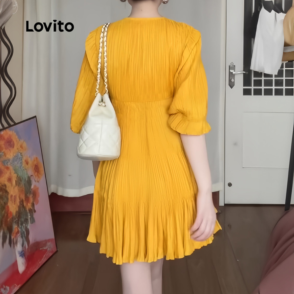 Lovito Vestido Elegante Com Babados E Bainha Jacquard Primavera/verão Vestido Amarelo Para Mulheres LB135LD306
