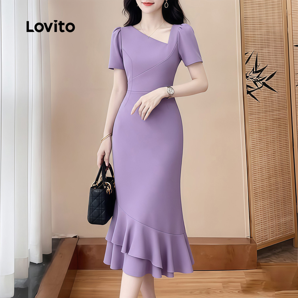 Lovito Vestido Elegante com Babados e Barra Assimétrica Primavera/verão Roxo para Mulheres LK4ED730