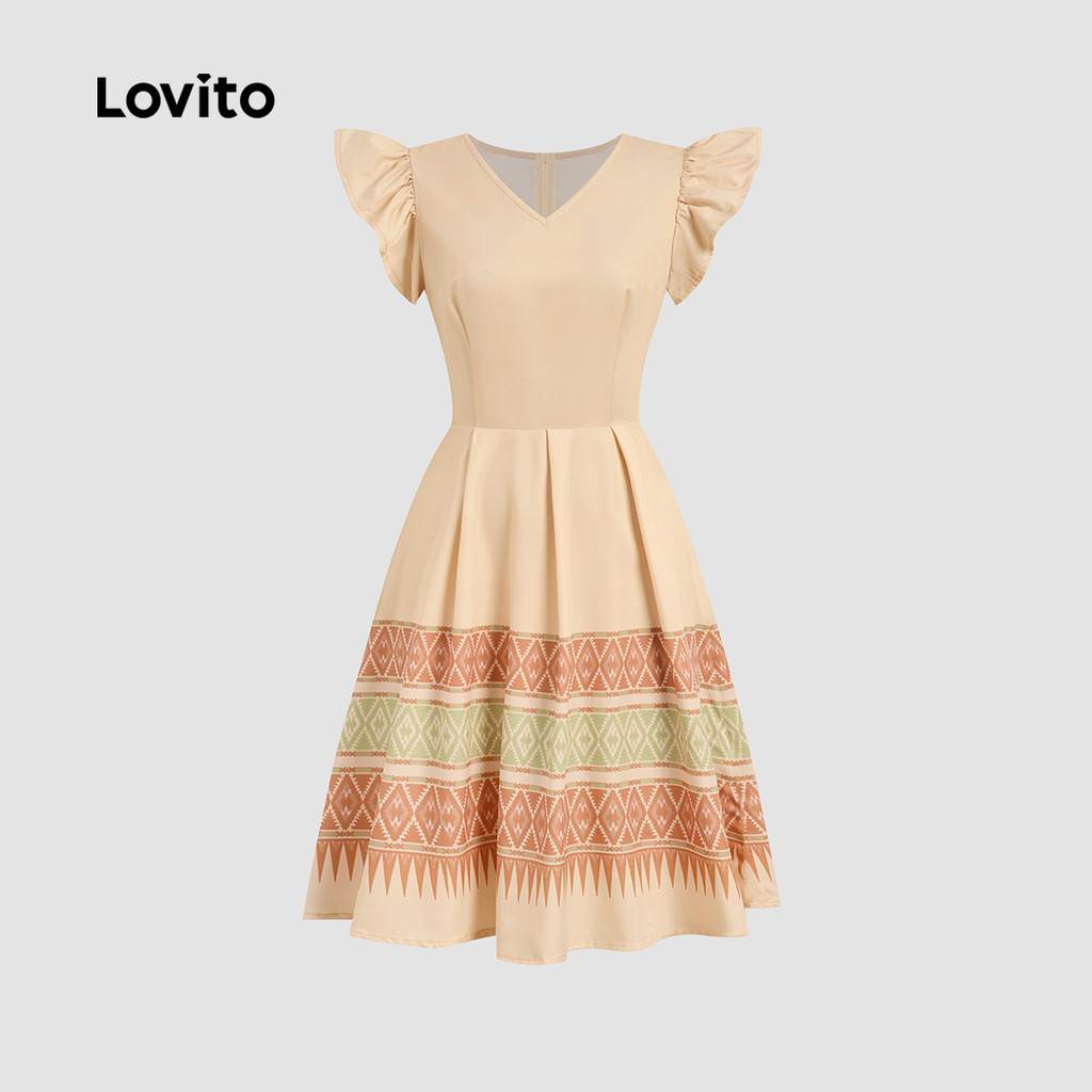 Lovito Vestido Elegante com Babados Estampa em Zíper Primavera/verão para Mulheres LBL34012