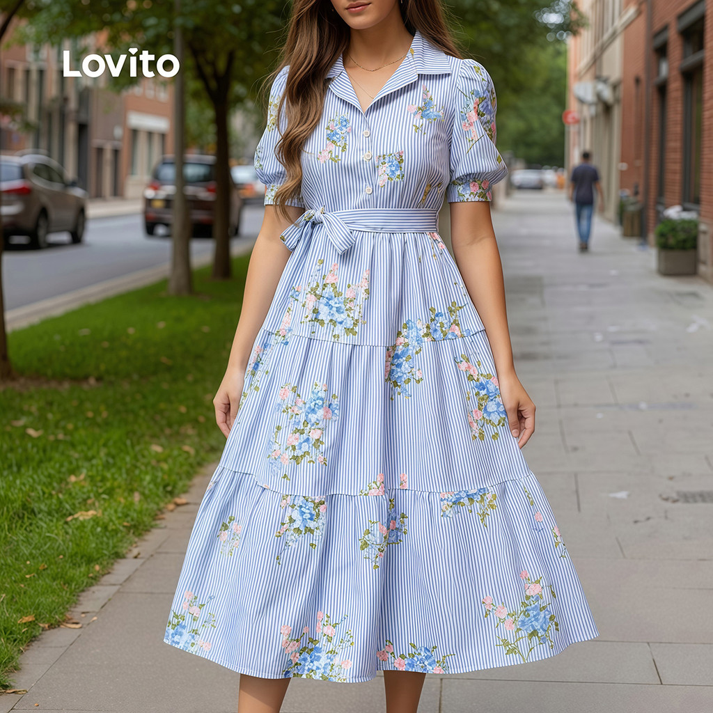 ✅DESTAQUES -❤️Botão frontal -❤️Cinto -❤️Sensação de mão suave -❤️Primavera e verão ✅DESCRIÇÕES Estampa / Padrão:Listrado Estilo:Elegante. Tipo de vestido:Uma Linha Tamanho Plus:No Material:Poliéster Composição:100%Polyester Tipo de modelagem:Slim Fit. Transparência:No Esticar:Non-stretch Feito na China ✅O PACOTE INCLUI 1XVestir ✅INTRODUÇÃO LOVITO A Lovito é uma marca em crescimento que acredita no poder das meninas. Estamos comprometidos em oferecer opções de roupas fashion e acessíveis, para todos os estilos, necessidades e identidades. Acreditamos que a moda deve ser divertida, liberadora e fazer você se sentir incrível. Afinal, o melhor acessório para qualquer look é a autoconfiança! ✅NOTAS DE COMPRA Antes de comprar, dê uma olhadinha na tabela de medidas disponível no site. Lembre-se de que, por serem feitas manualmente, as medidas podem variar de 1 a 2 cm. As cores dos produtos também podem ter pequenas diferenças em relação às fotos, dependendo da iluminação e das configurações do seu dispositivo. Siga nossa loja e conheça novos itens e as melhores ofertas para você!! Se você tiver alguma dúvida, converse conosco e responderemos o mais rápido possível.
