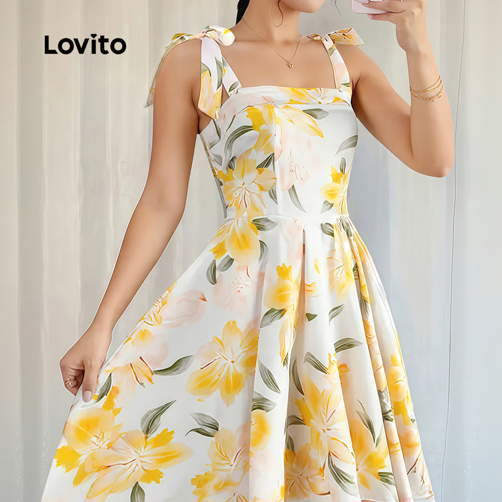 ✅DESTAQUES -❤️Amarrar -❤️Padrão -❤️Sensação de mão suave -❤️Primavera e verão ✅DESCRIÇÕES Estampa / Padrão:Floral Estilo:Elegante. Tipo de vestido:Uma Linha Tamanho Plus:No Material:Poliéster Composição:100%Polyester Tipo de modelagem:Slim Fit Transparência:No Esticar:Non-stretch Feito na China ✅O PACOTE INCLUI 1XVestir ✅INTRODUÇÃO LOVITO A Lovito é uma marca em crescimento que acredita no poder das meninas. Estamos comprometidos em oferecer opções de roupas fashion e acessíveis, para todos os estilos, necessidades e identidades. Acreditamos que a moda deve ser divertida, liberadora e fazer você se sentir incrível. Afinal, o melhor acessório para qualquer look é a autoconfiança! ✅NOTAS DE COMPRA Antes de comprar, dê uma olhadinha na tabela de medidas disponível no site. Lembre-se de que, por serem feitas manualmente, as medidas podem variar de 1 a 2 cm. As cores dos produtos também podem ter pequenas diferenças em relação às fotos, dependendo da iluminação e das configurações do seu dispositivo. Siga nossa loja e conheça novos itens e as melhores ofertas para você!! Se você tiver alguma dúvida, converse conosco e responderemos o mais rápido possível.