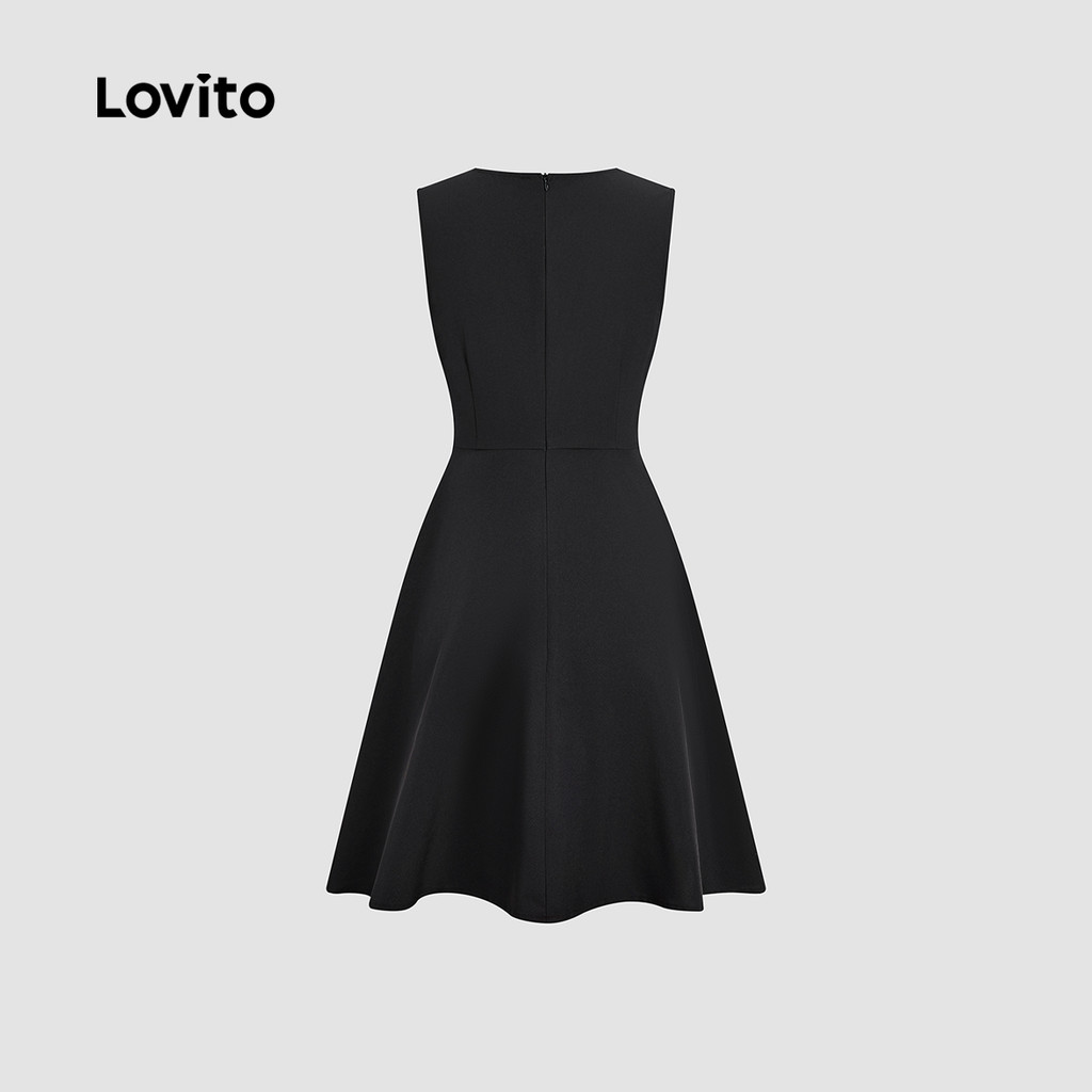 Lovito Vestido Elegante com Cristais de Strass Vestido Preto Primavera/verão para Mulheres L164ED431