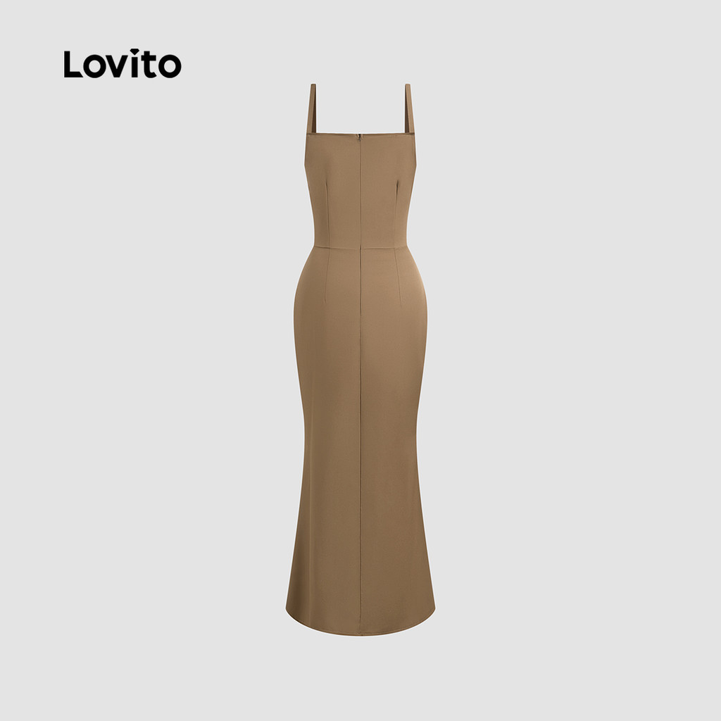 Lovito Vestido Elegante Com Detalhe De Nó Na Cintura Modelo Cáqui Para Mulheres Ideal Para a Primavera/verão L137ED310