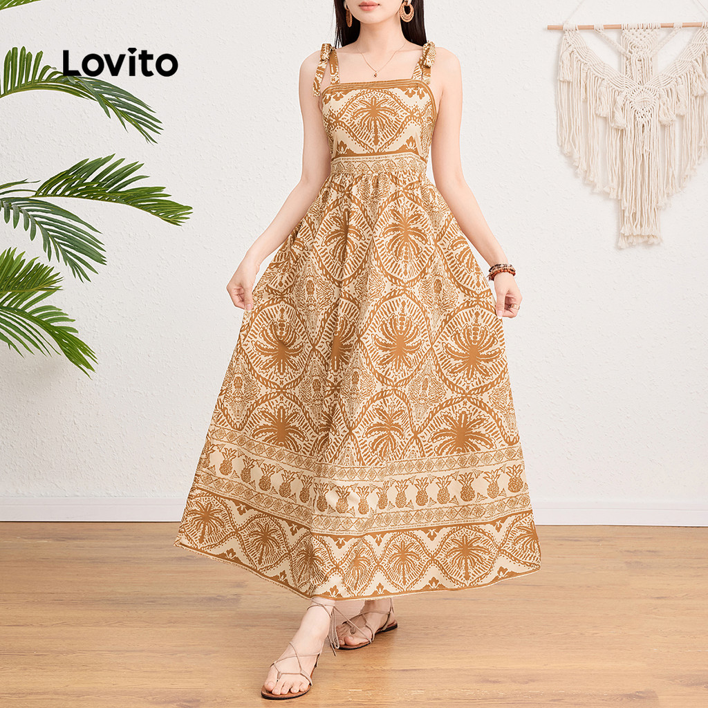 Lovito Vestido Elegante Com Estampa Tribal E Gravata Frontal Vestido De Verão/Primavera Para Mulheres L124AD1357