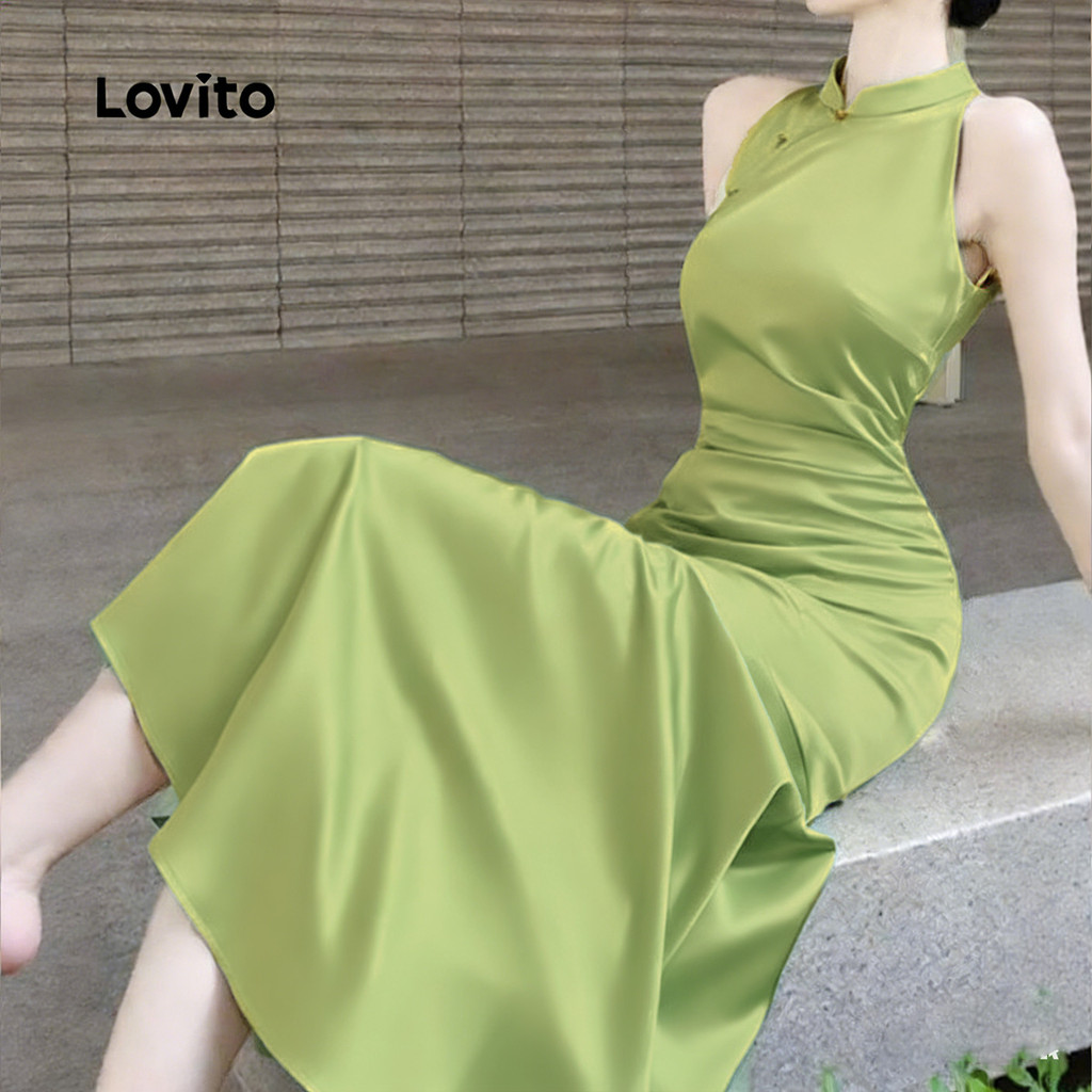 Lovito Vestido Elegante com Fecho de Zíper Primavera/verão Verde para Mulheres L167LD064