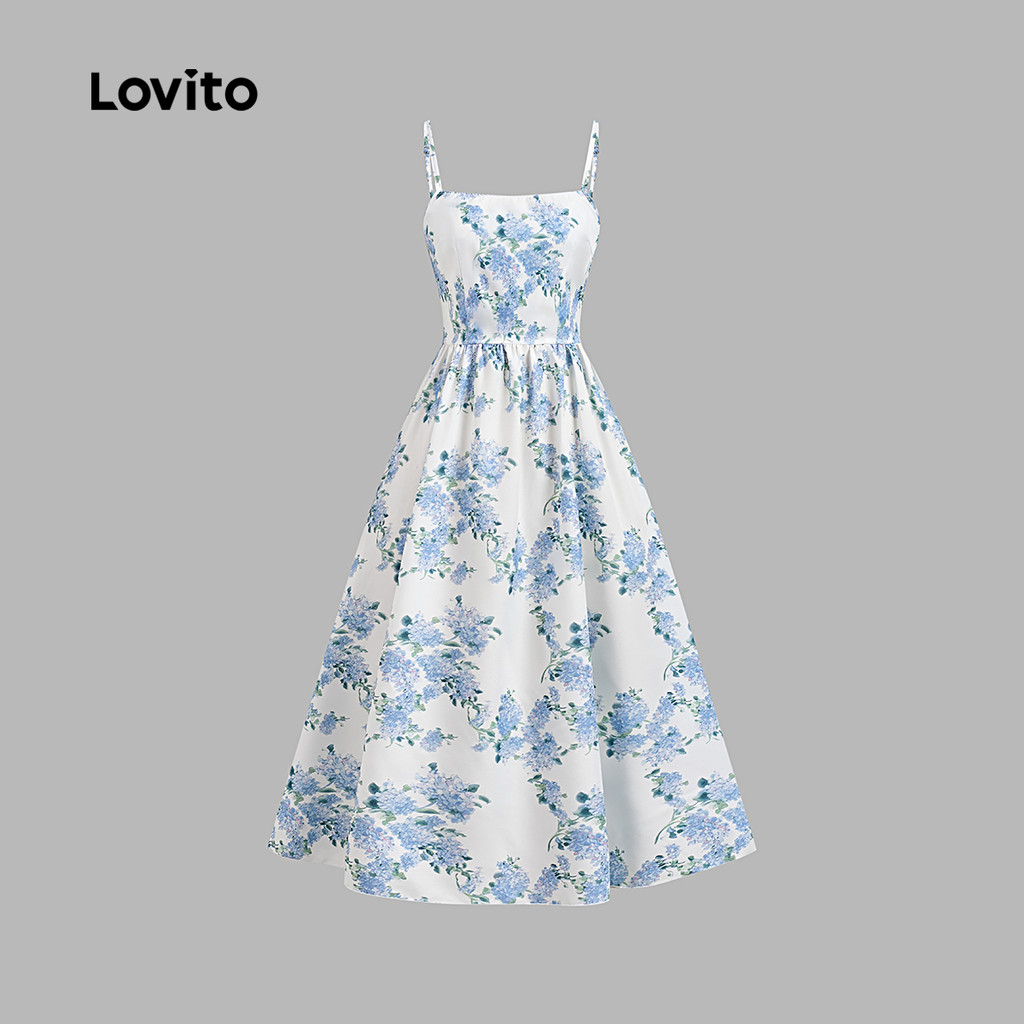 Lovito Vestido Elegante com Flores Vestido de Primavera/verão Azul para mulheres L142LD243