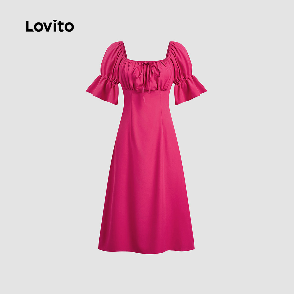 Lovito Vestido Elegante com Lacinho Babados Toque Suave Primavera/verão Vermelho Rosado L137LD031