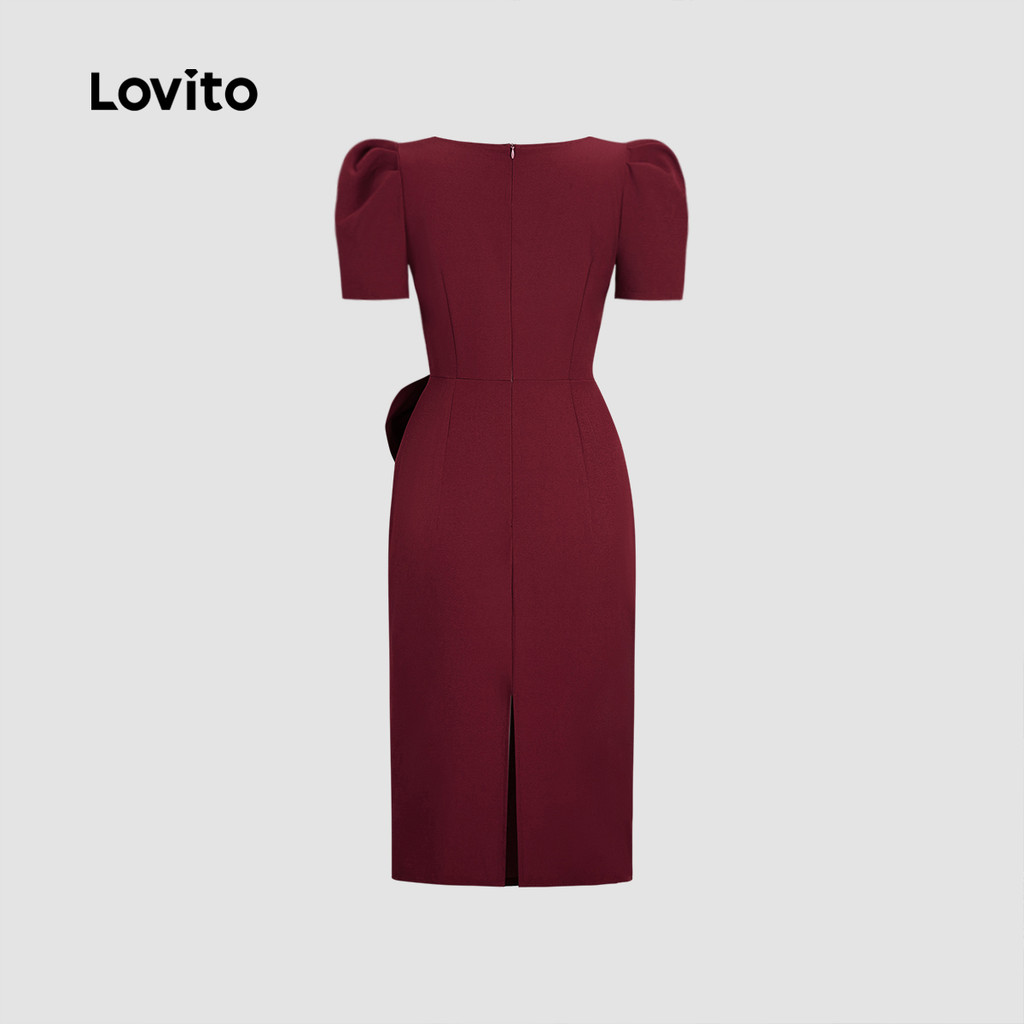 Lovito Vestido Elegante Com Laço Cor Vinho Para Mulheres Primavera/verão L158AD147