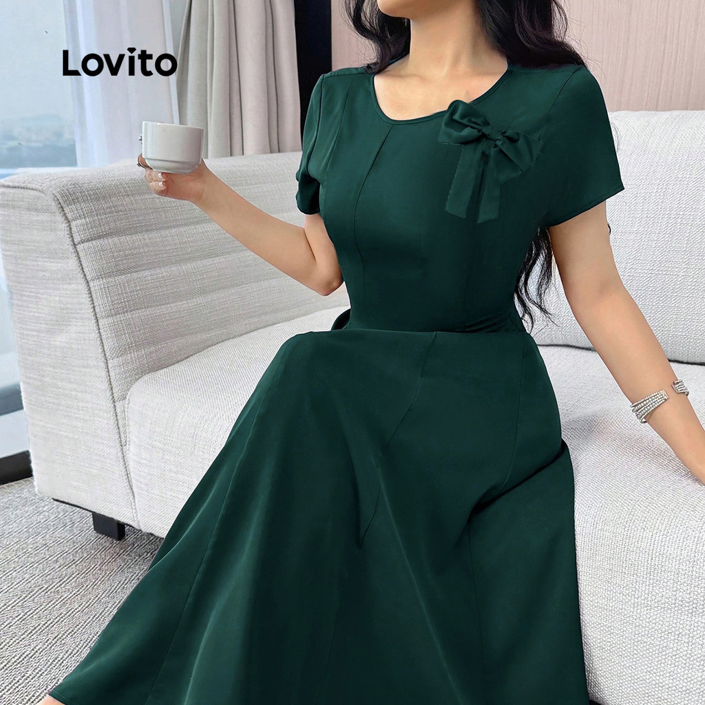 Lovito Vestido elegante com zíper e laço minimalista primavera/verão vestido verde para mulheres LK3LD423