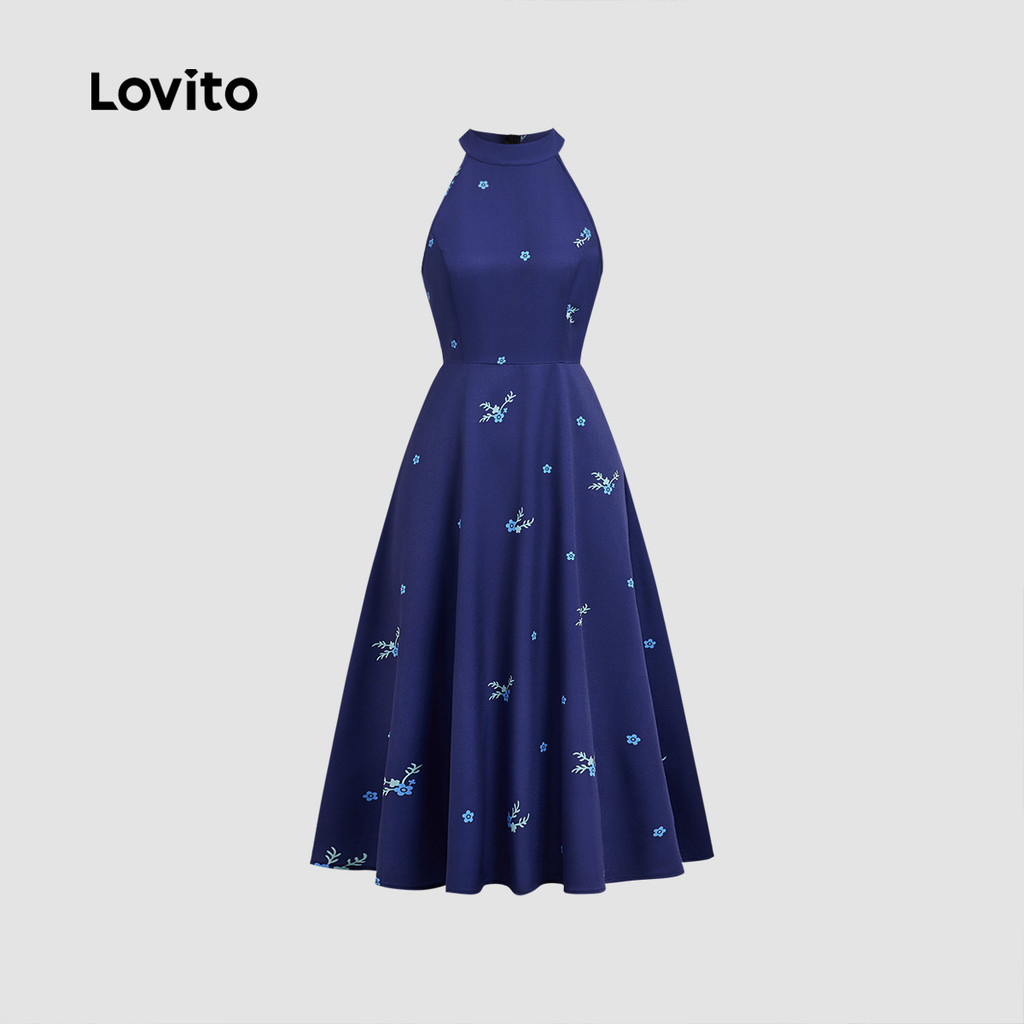Lovito Vestido Elegante com Zíper Primavera/verão Azul Escuro para Mulheres L172LD322