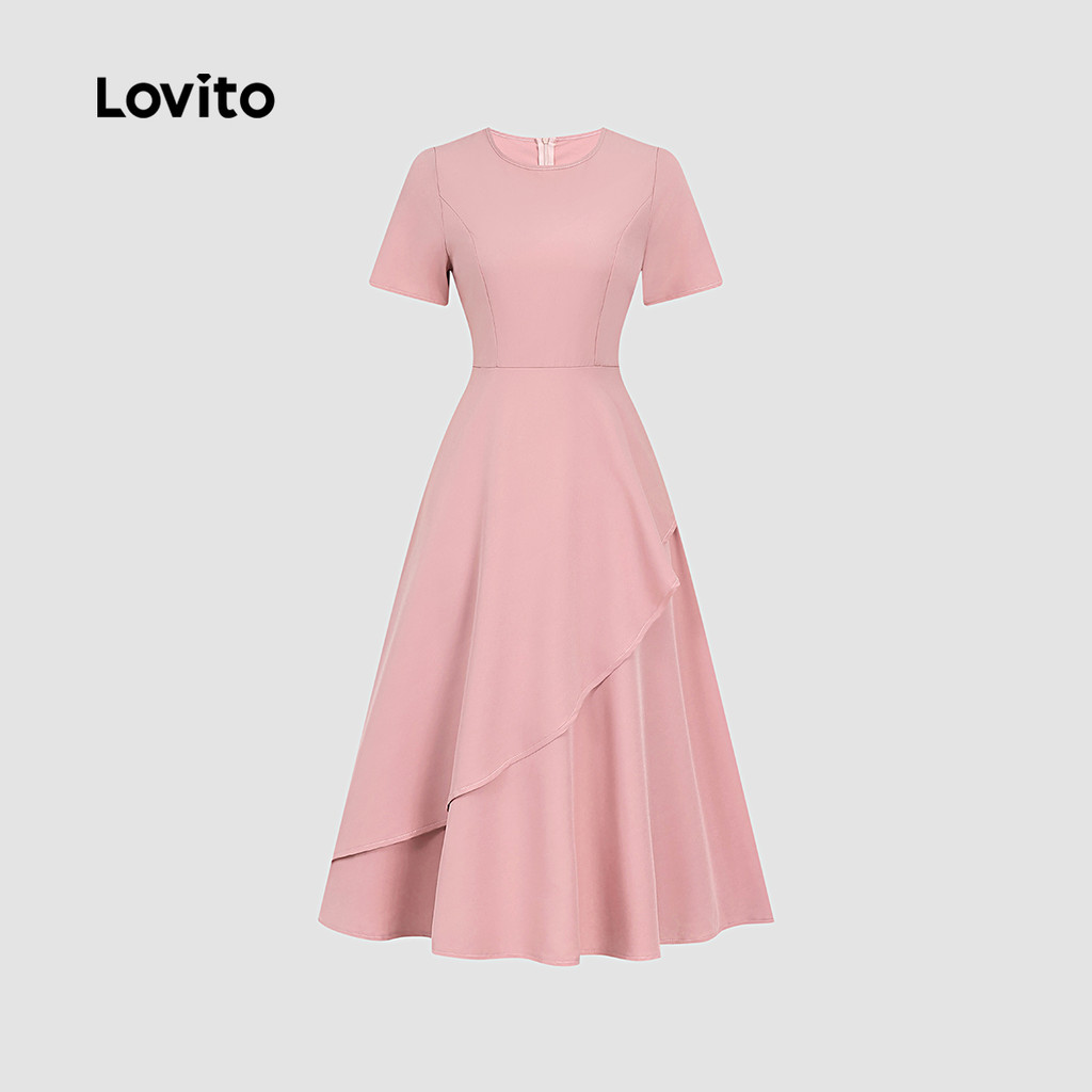 Lovito Vestido Elegante com Zíper - Primavera/verão Vestido Rosa para mulheres L149LD156