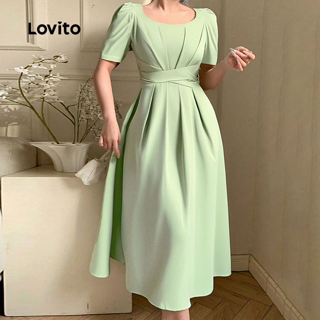 Lovito Vestido Elegante Cruzado com Pregas Primavera/verão Verde para Mulheres L137ED153
