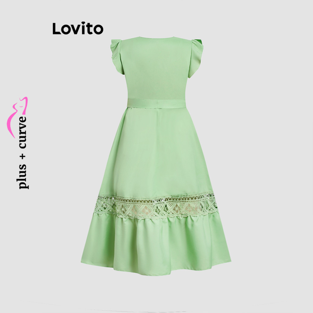 Lovito Vestido Elegante Curva Plus Size Com Babados De Renda Vestido De Verão/Primavera Para Mulheres LBL20536