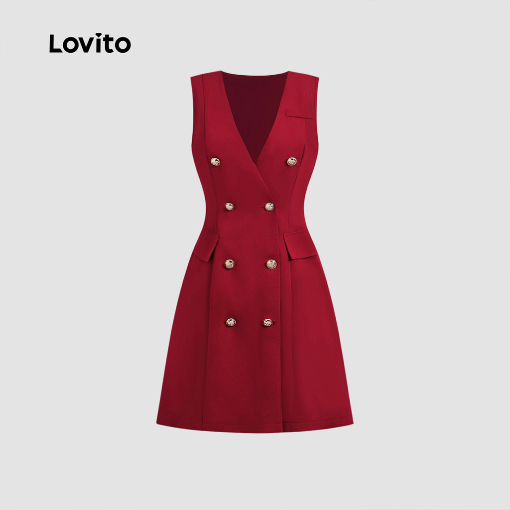 Lovito Vestido Elegante De Festa Com Botões Duplos Simples Vermelho Para Primavera/verão L150ED512