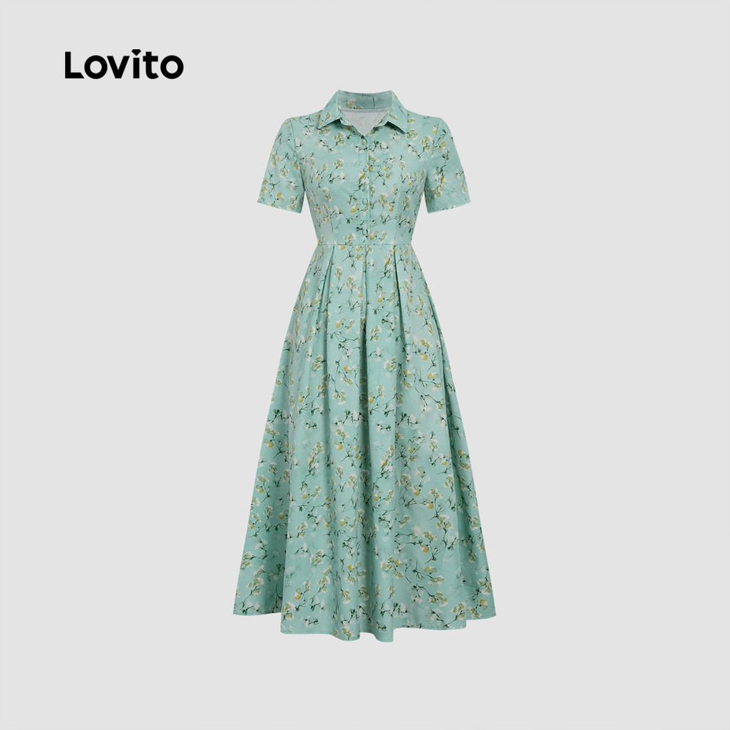 Lovito Vestido Elegante de Flores Plissado Simples para Primavera/verão para Mulheres L155ED693