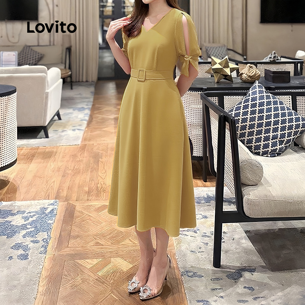 ✅Destaques -❤️Estiloso -❤️Com Amarração -❤️Com Cinto -❤️Macio E Confortável -❤️Ideal Para Primavera E Verão ✅Descrição Estampa: Lisa Estilo: Elegante Tipo De Vestido: Linha A Tamanhos Plus Size: Não Material: Poliéster Composição: 100% Poliéster Modelagem: Regular Transparência: Não Elasticidade: Sem Elasticidade Origem: China Continental ✅O Pacote Inclui 1 Vestido ✅Apresentação Da Lovito A Lovito É Uma Marca Emergente Que Acredita No Poder Feminino, Comprometida Em Oferecer Opções De Roupas Modernas E Acessíveis Para Diferentes Estilos, Necessidades E Identidades. Acreditamos Que A Moda Deve Ser Divertida, Libertadora E Fazer Você Se Sentir Bem. Afinal, O Melhor Acessório Para Qualquer Look É A Autoconfiança. ✅Notas De Compra Por Favor, Consulte A Tabela De Tamanhos Antes De Comprar. Pode Haver Uma Pequena Diferença Devido À Medição Manual. Todas As Fotos Dos Produtos Nesta Loja São Fotos Reais. Devido À Iluminação E À Diferença De Tela, Pequenas Variações De Cor E Textura Do Produto Podem Ser Normais. Siga Nossa Loja E Descubra Novos Itens E As Melhores Ofertas Para Você!! Se Tiver Alguma Dúvida Ou Problema, Entre Em Contato Conosco. 😊
