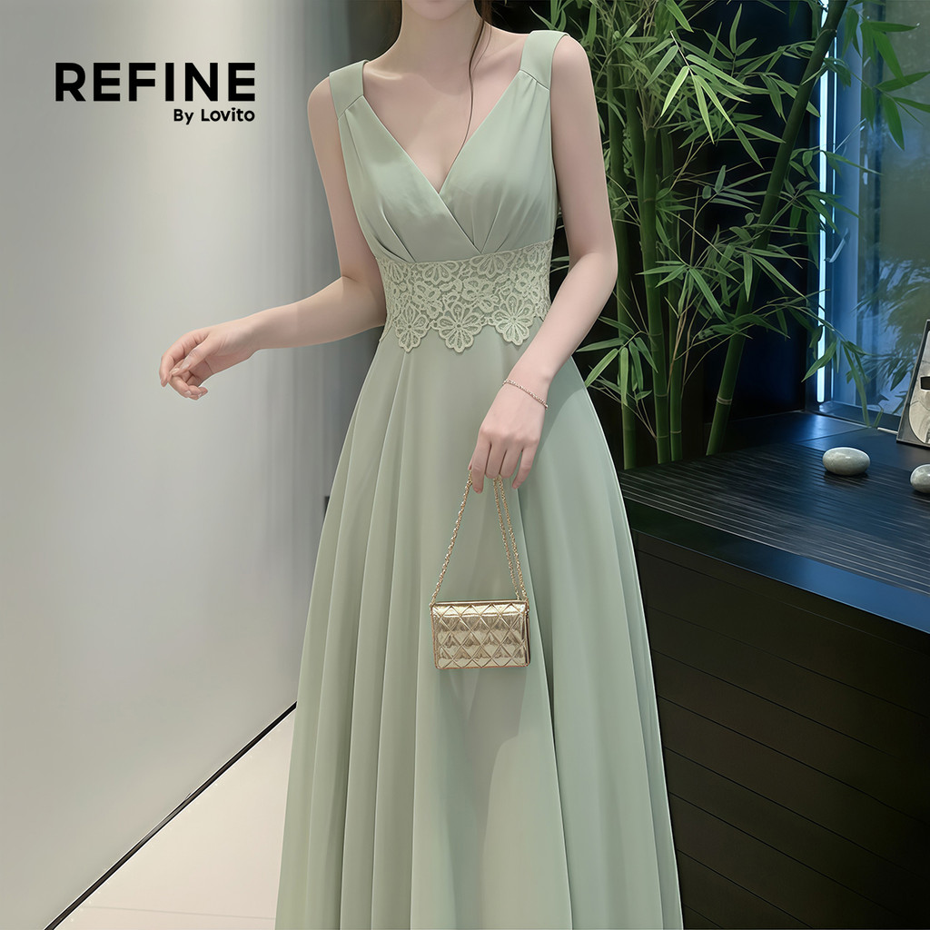 Lovito Vestido Elegante de Renda com Tecido e Costuras Delicadas para mulheres LR32094