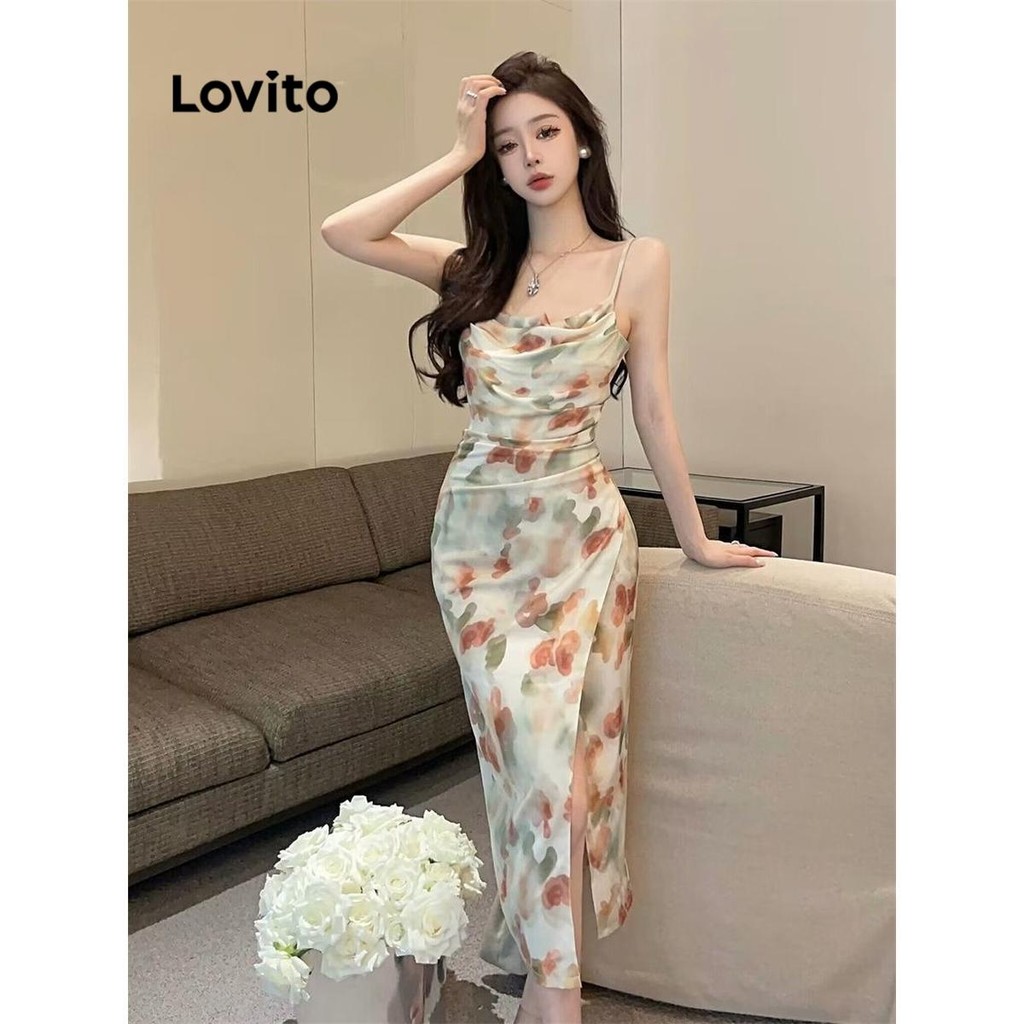 Lovito Vestido elegante Ditsy floral com frente dividida com padrão para mulheres LNE72237