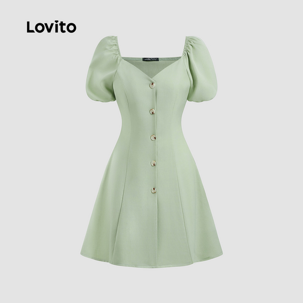 Lovito Vestido Elegante E Liso Com Botões Para O Verão/primavera L128ED279