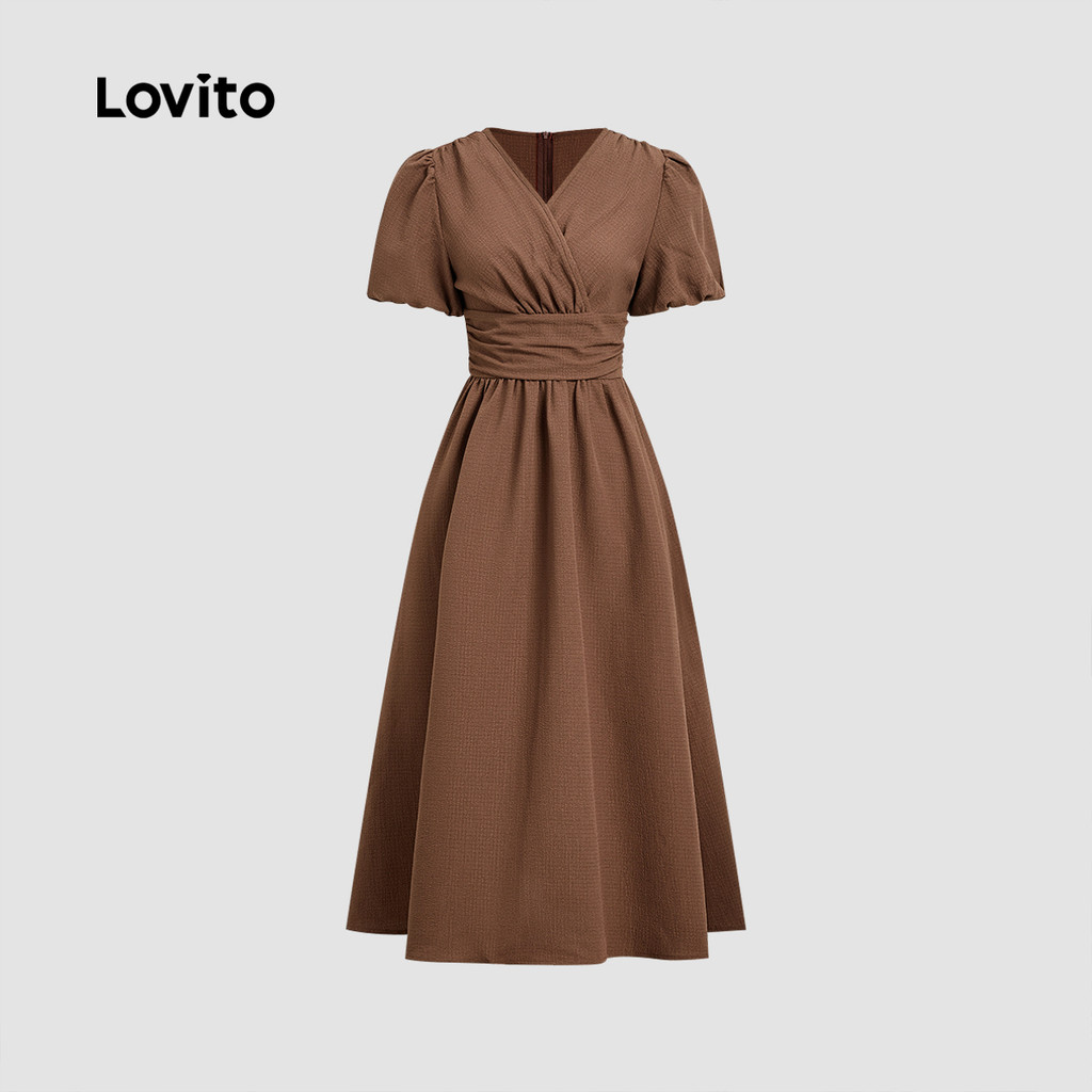 Lovito Vestido Elegante Espartilho com Zíper Primavera/verão Marrom para Mulheres LBL32182