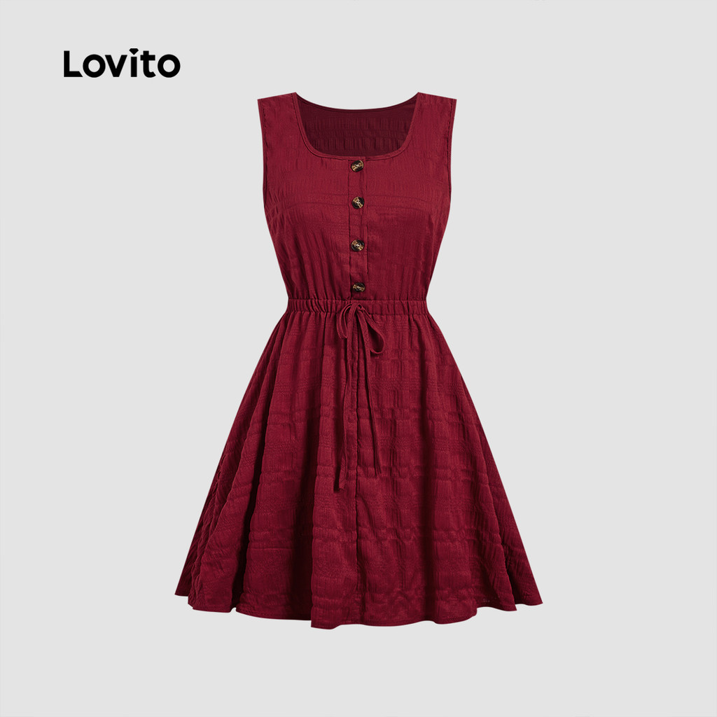 Lovito Vestido Elegante Festa De Natal Ano Novo Casual Amarração Nas Costas Primavera/verão Cor Vinho Mulheres L165ED274