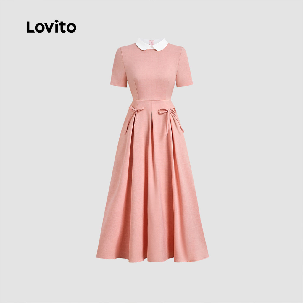 Lovito Vestido Elegante Gravata Frontal Primavera/verão Cinza Rosa Vestido para Mulheres L172ED189