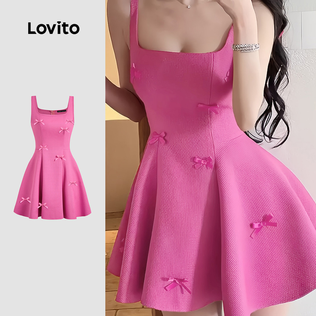 Lovito Vestido Elegante Laço Dia Dos Fresco E Confortável Vermelho Rosado Primavera/verão Para Mulheres L139AD311