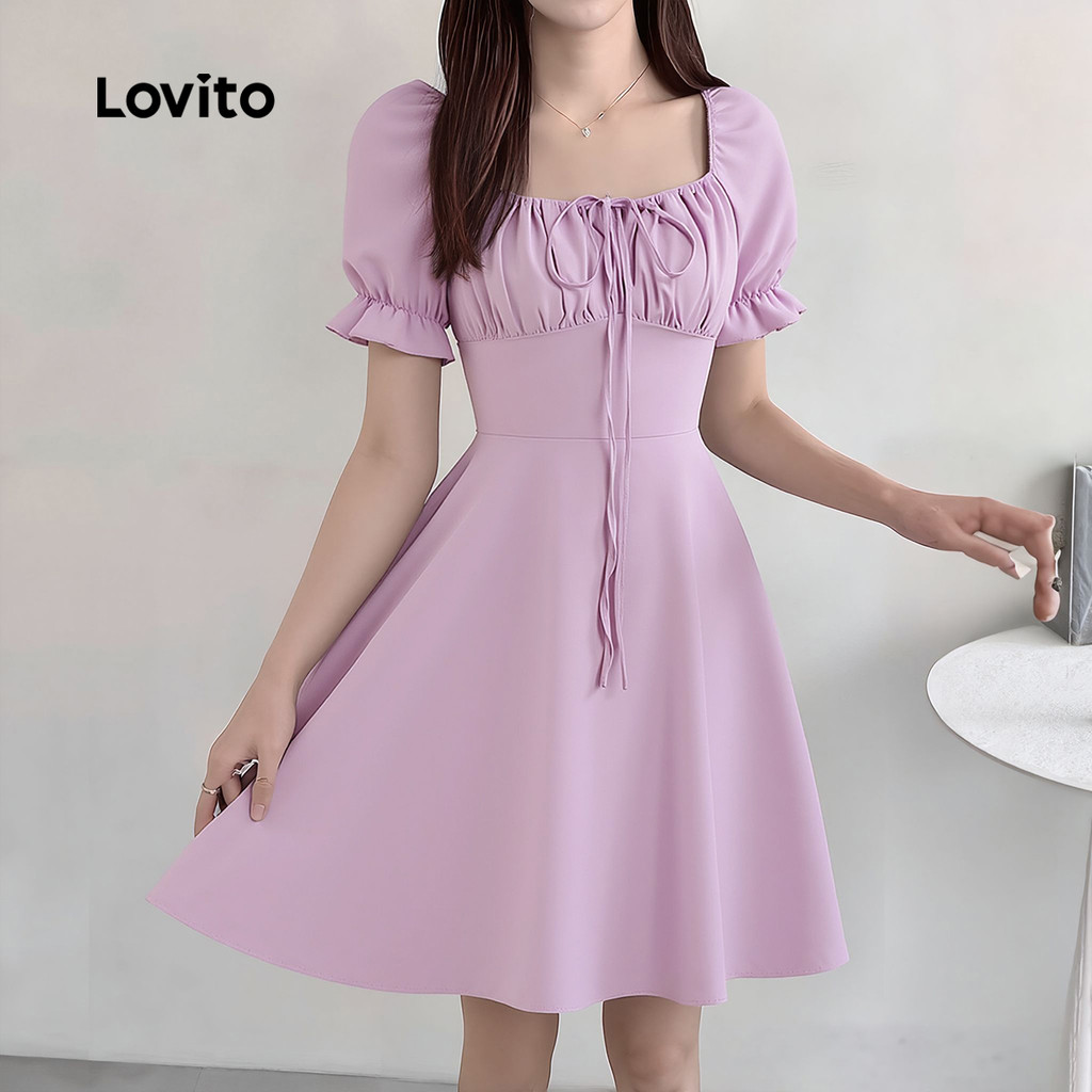 Lovito Vestido Elegante Laço Primavera/verão Vestido Roxo para Mulheres L178ED2057