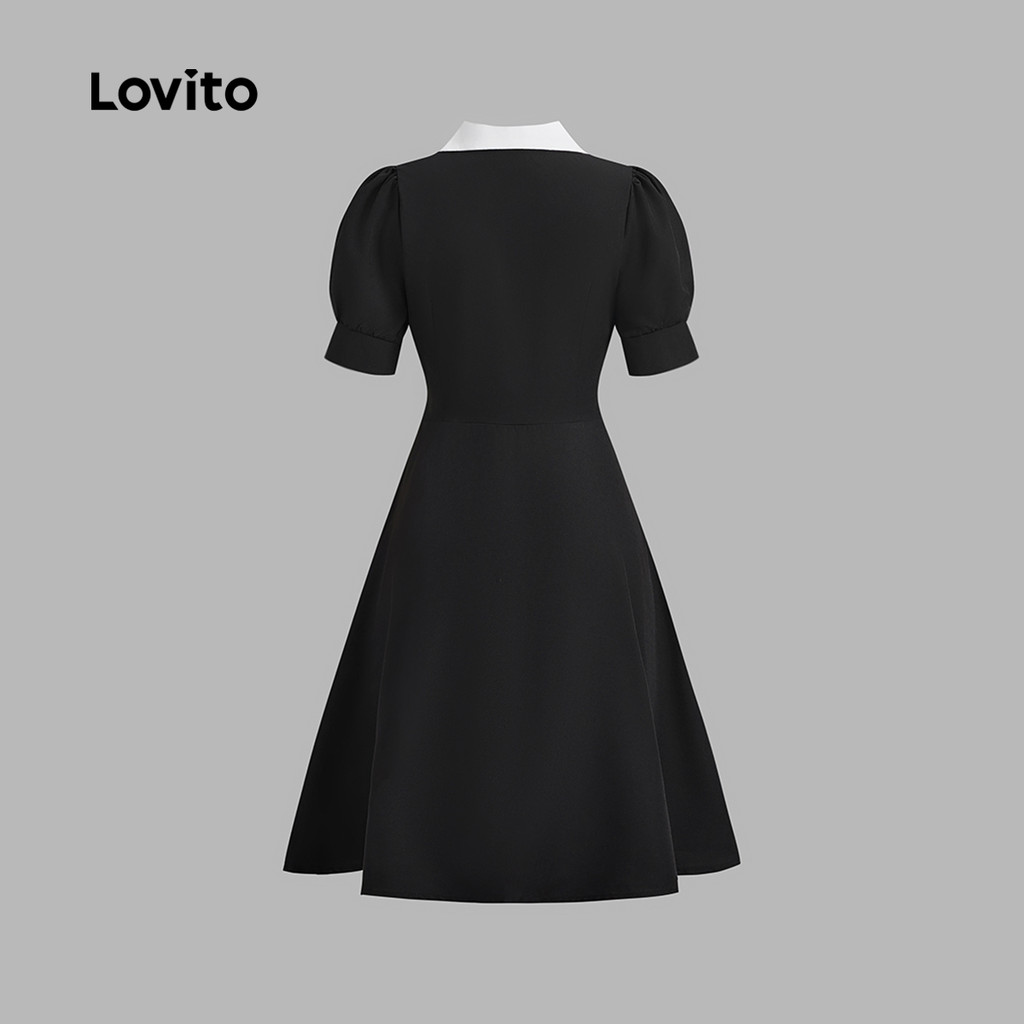Lovito Vestido Elegante, Liso, Com Botões, Em Bloco De Cores, Para Verão/primavera, Para Mulheres L131LD1011