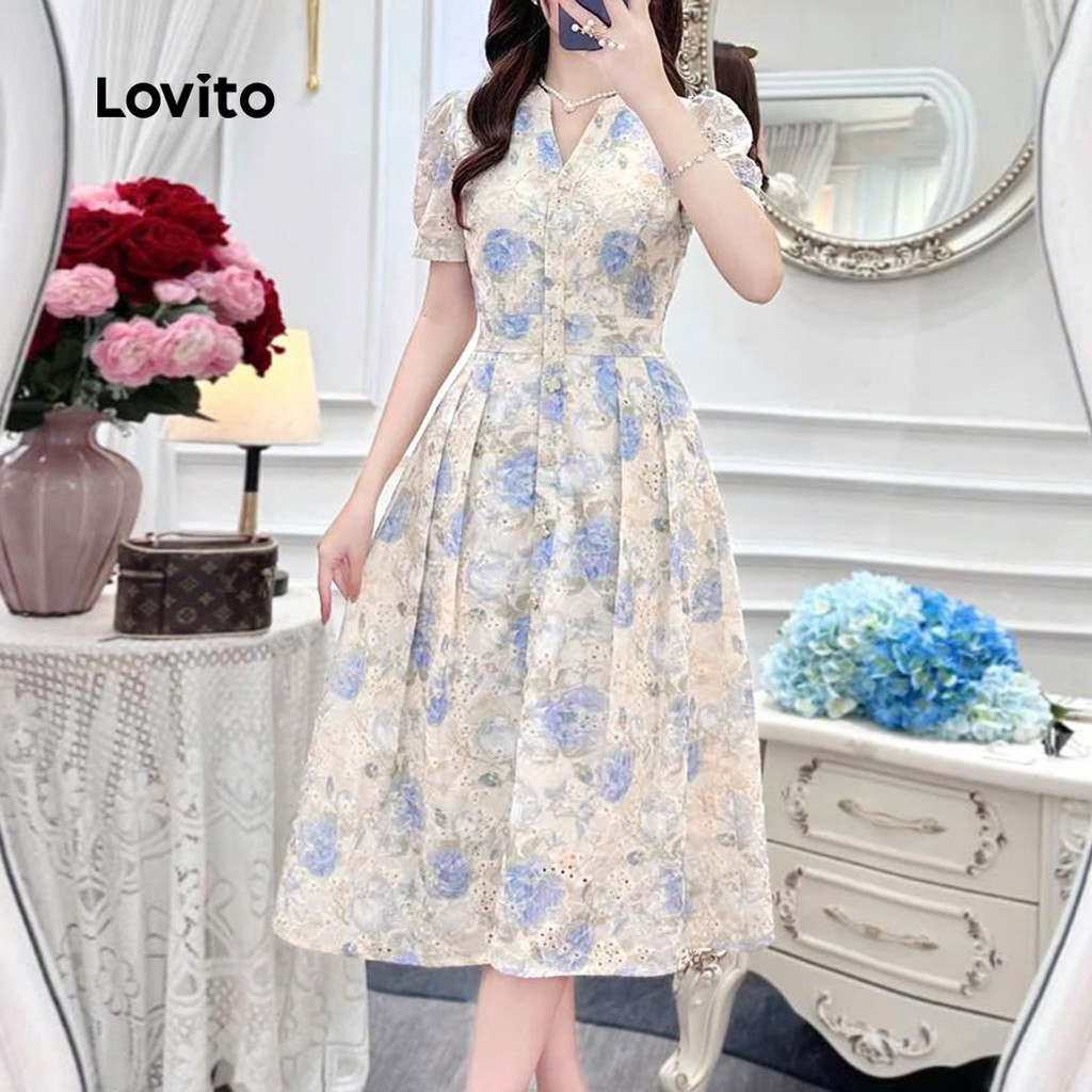 Lovito Vestido Elegante Plissado com Flores para Mulheres - Comuta Primavera/Verão L172ED1620